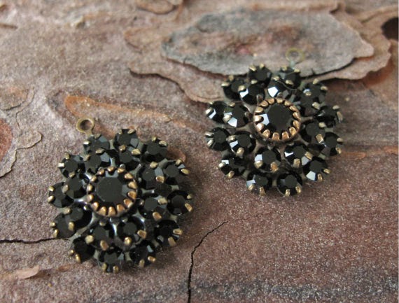 AT21. 22mm jet ja türkiis swarovskid hõbedasel filigreel. (2tk)(1 / 3,40)
